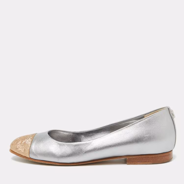 مملوكة مسبقًا Chanel Grey/Gold Leather CC Cap Toe Ballet Flats Size 35
