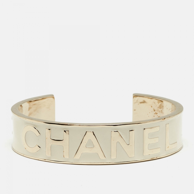 Chanel Logo Enamel Gold Tone Cuff Bracelet M