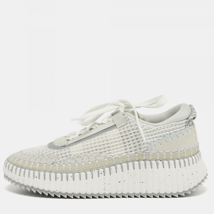 Pre Owned Chloé Nama Size 36 Grey/White Knit Fabric and Suede Lace Up Sneakers