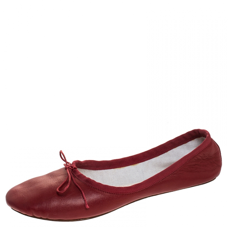 مملوكة مسبقًا  Chloé Red Leather Bow Ballet Flats Size 38.5