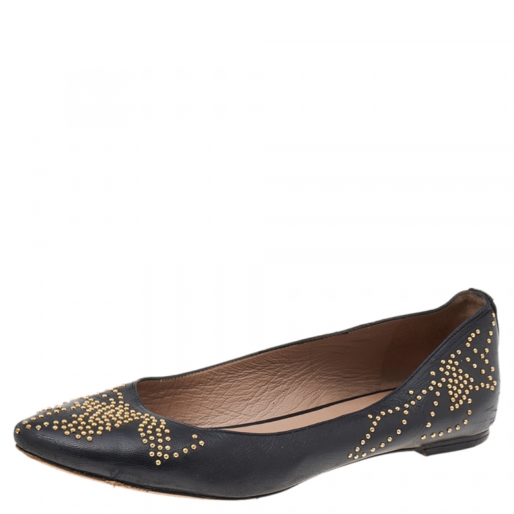 Chloe Black Leather Anatolia Studded Ballet Flats Size 37.5