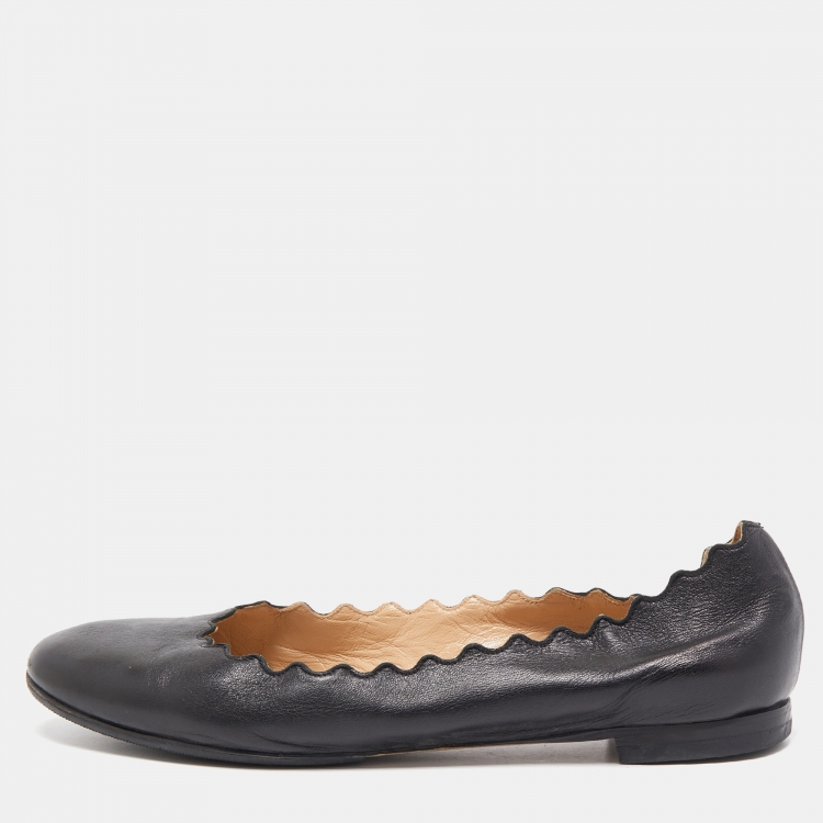 Chloe Black Scalloped Leather Lauren Ballet Flats Size 38