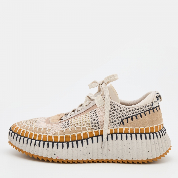 Chloe Multicolor Knit Fabric and Suede Nama Low Top Sneakers Size 38