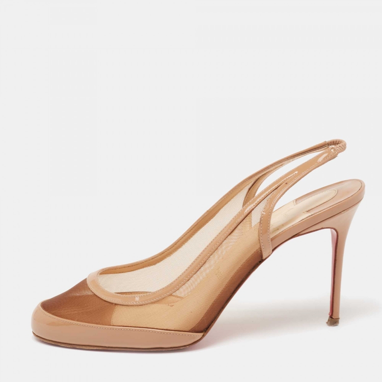 Christian Louboutin Beige Mesh and Patent Leather Slingback Pumps Size 38