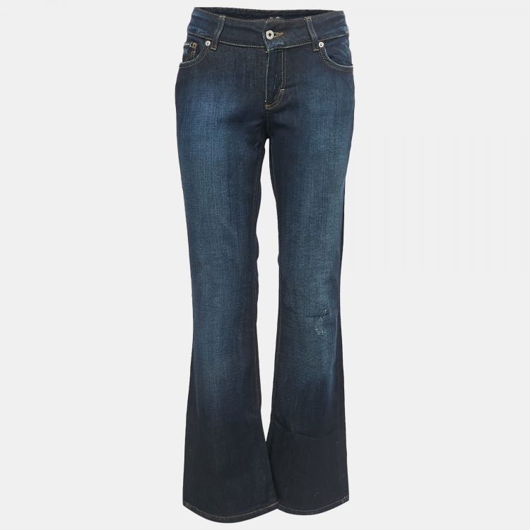 Pre Owned D&G Dark Blue Distressed Denim Very Low Rise Boot-Cut Jeans M Waist 31"