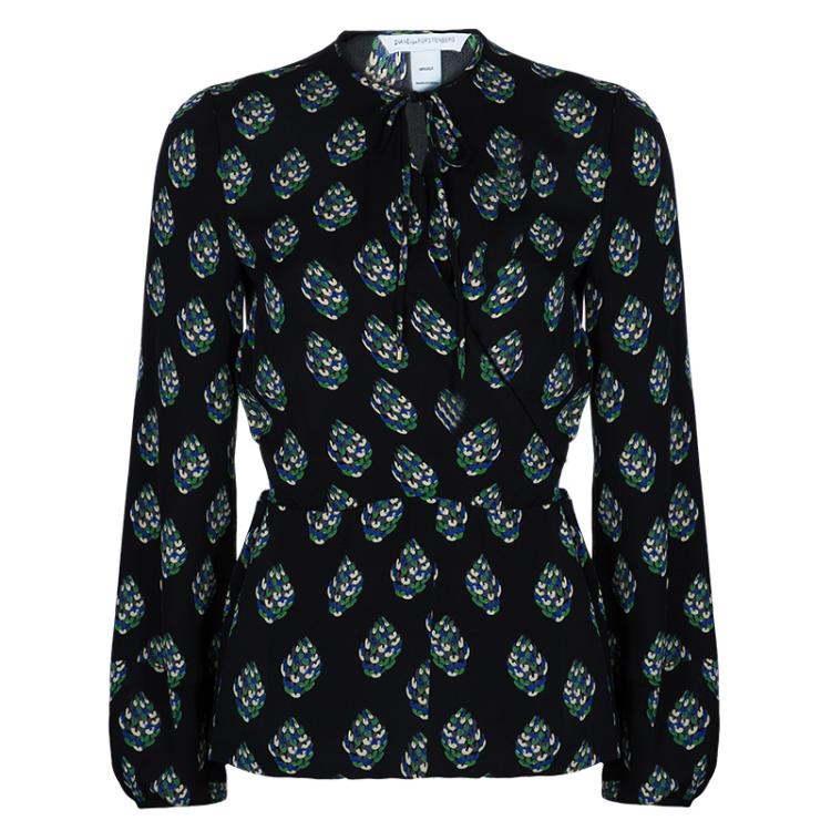 Pre Owned Diane Von Furstenberg Black Printed Nove Long Sleeve Top M