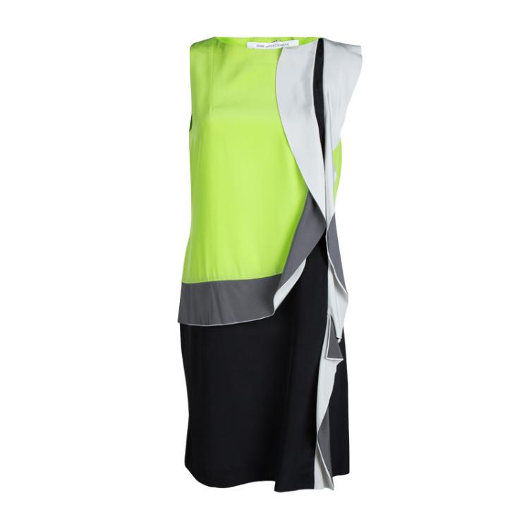 Pre Owned Diane von Furstenberg Colorblock Silk Ruffle Detail Sleeveless Shizuka Dress M