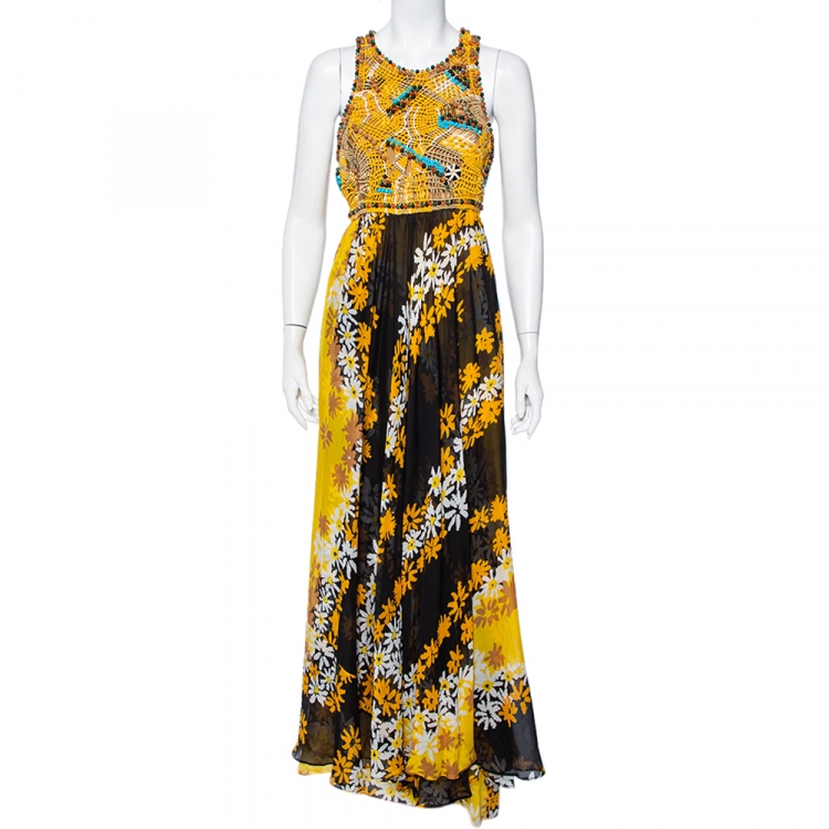 Diane Von Furstenberg Multicolor Cotton Beaded Macrame Yoke Detail Maxi Dress XL