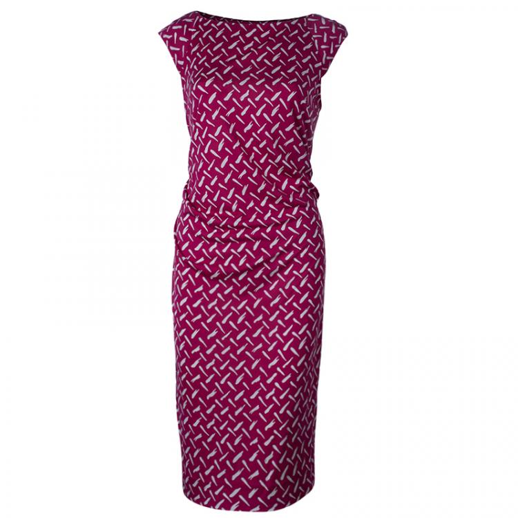 Pre Owned Diane Von Furstenberg Pink Printed Gabi Silk Jersey Dress L