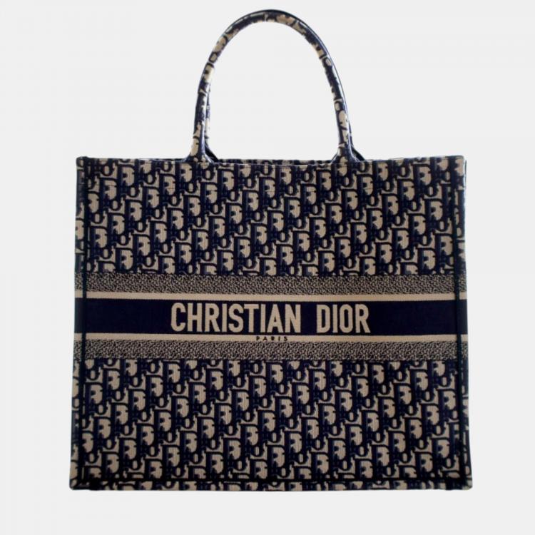 Dior Blue Large Oblique Embroidered Canvas Book Tote