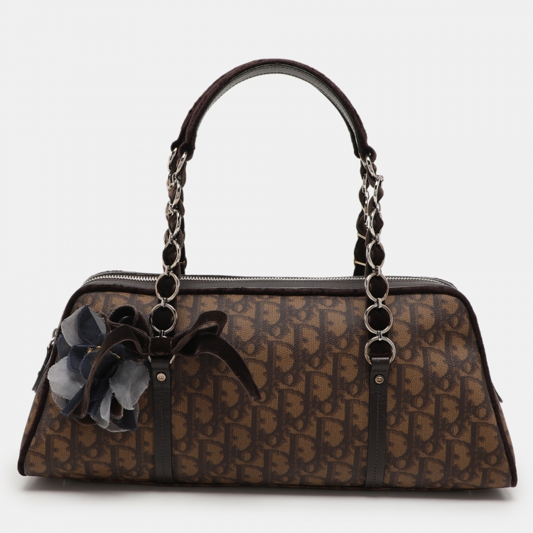 Dior Brown Oblique Coated Canvas, Velvet and Leather Trotter Romantique Satchel