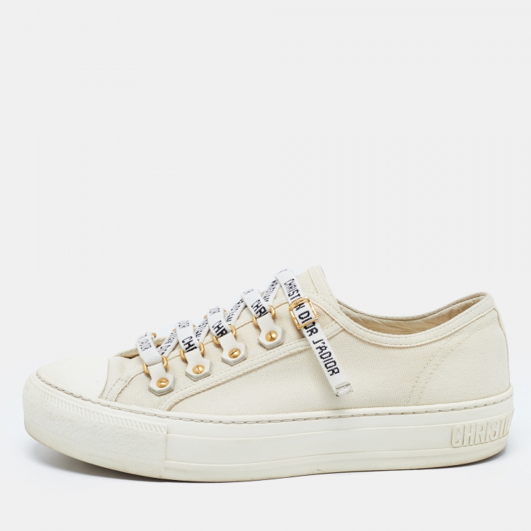 Dior White Canvas Walk'n'Dior Low Top Sneakers Size 36.5