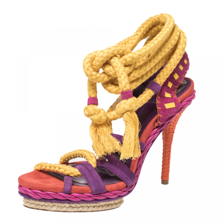 Dior Multicolor Suede Rope Platform Sandals Size 39