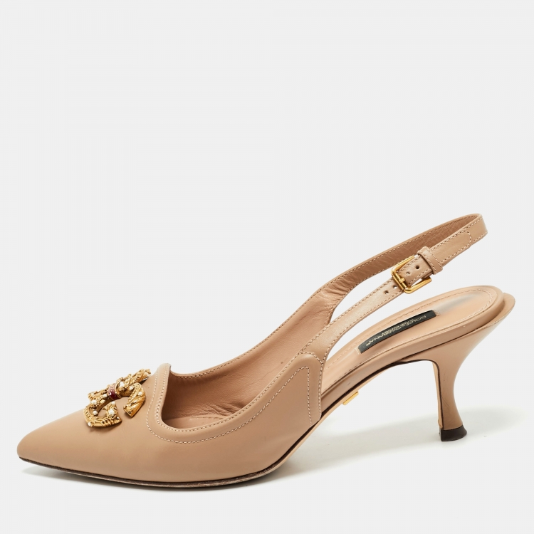 Dolce & Gabbana Beige Leather DG Amore Logo Embellished Slingback Sandals Size 39.5