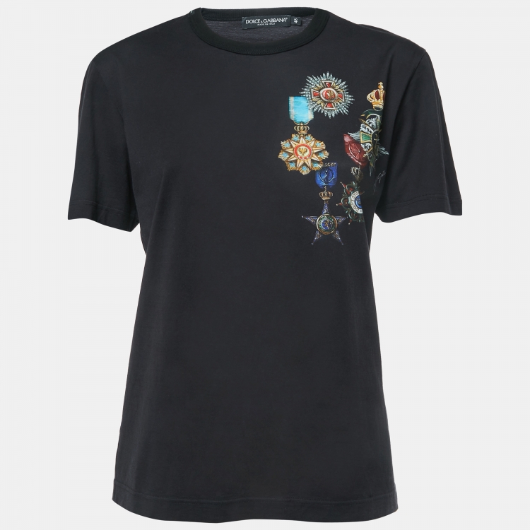 Dolce & Gabbana Black Logo Print Cotton Half Sleeve T-Shirt L