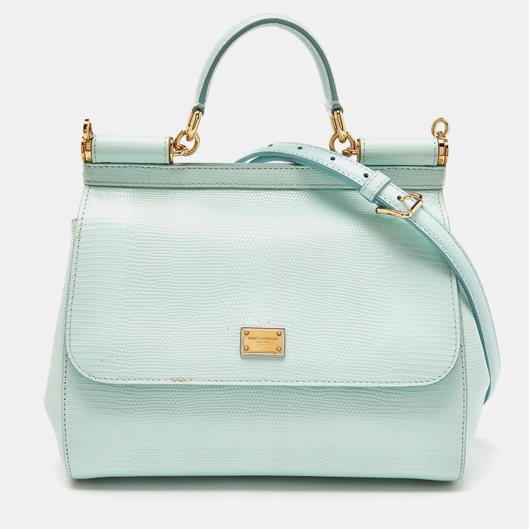 Dolce & Gabbana Green Iguana Embossed Leather Medium Miss Sicily Top Handle Bag