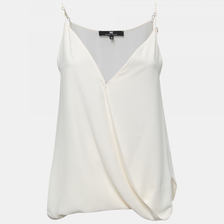 Pre Owned Elisabetta Franchi White Crepe Sleeveless Top M