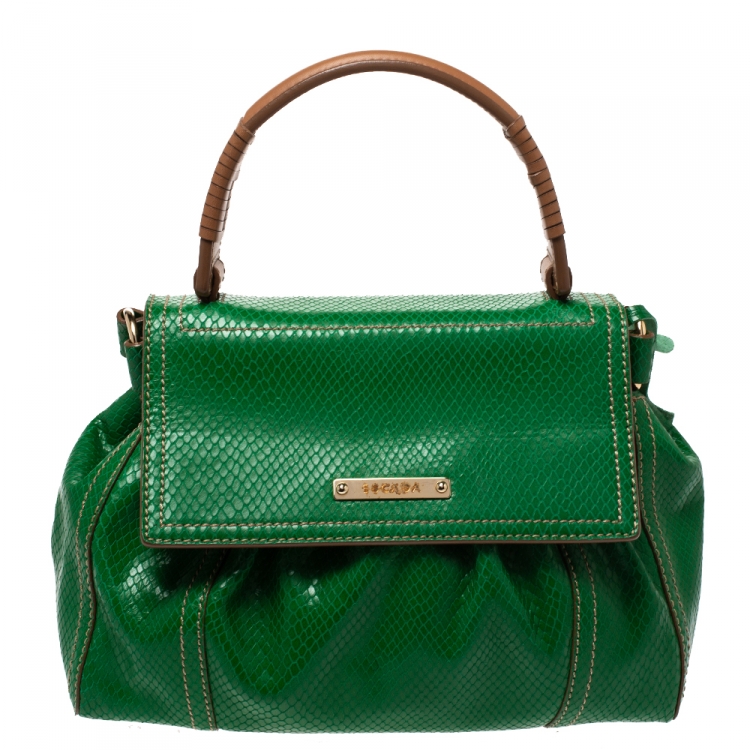 Escada Green Snakeskin Embossed Leather Top Handle Bag
