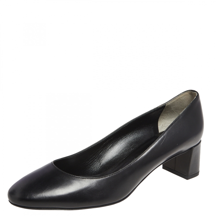 Pre Owned Fendi Black Leather Block Heel Pumps Size 39.5