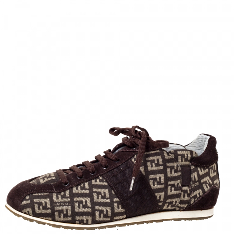 Fendi Brown FF Canvas And Suede Trim Low Top Sneakers Size 36