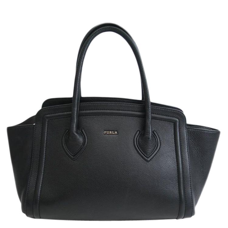 Furla Black Grainy Calf Leather Medium College Tote