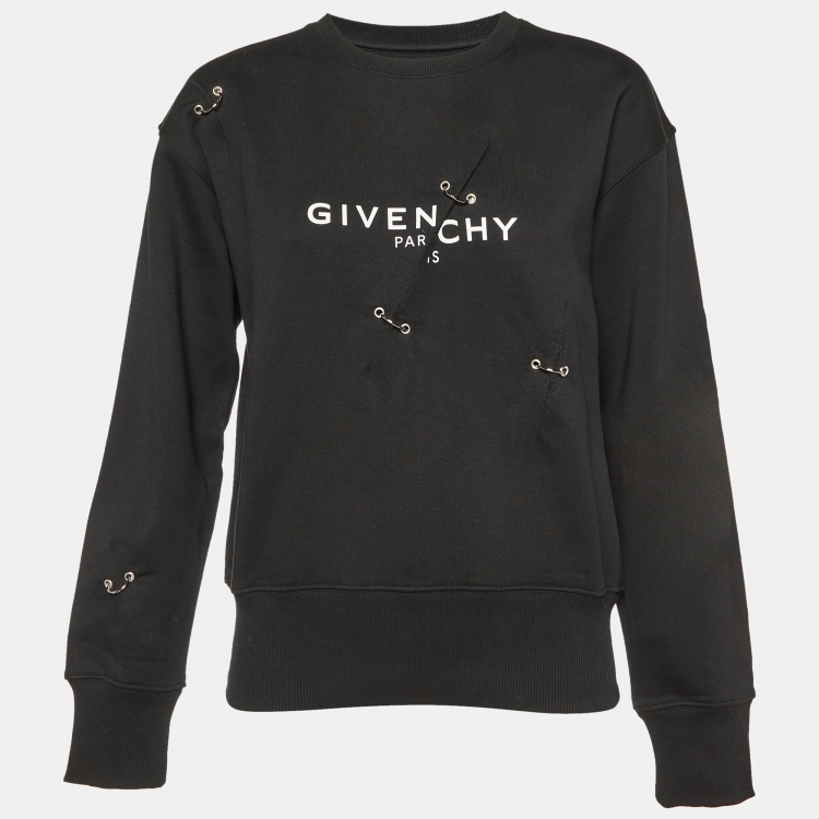 Givenchy Black Cotton Logo Print Ring Embellished Sweatshirt S