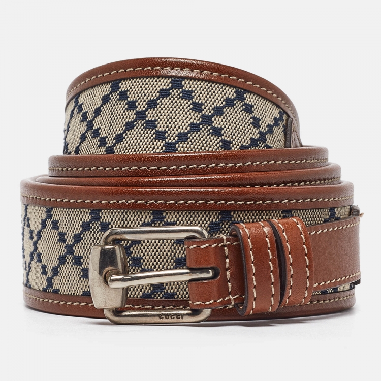 Gucci Beige/Brown Diamante Canvas and Leather Buckle Belt 105 CM