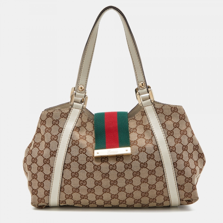Gucci Beige/Cream GG Canvas and Leather New Ladies Web Hobo