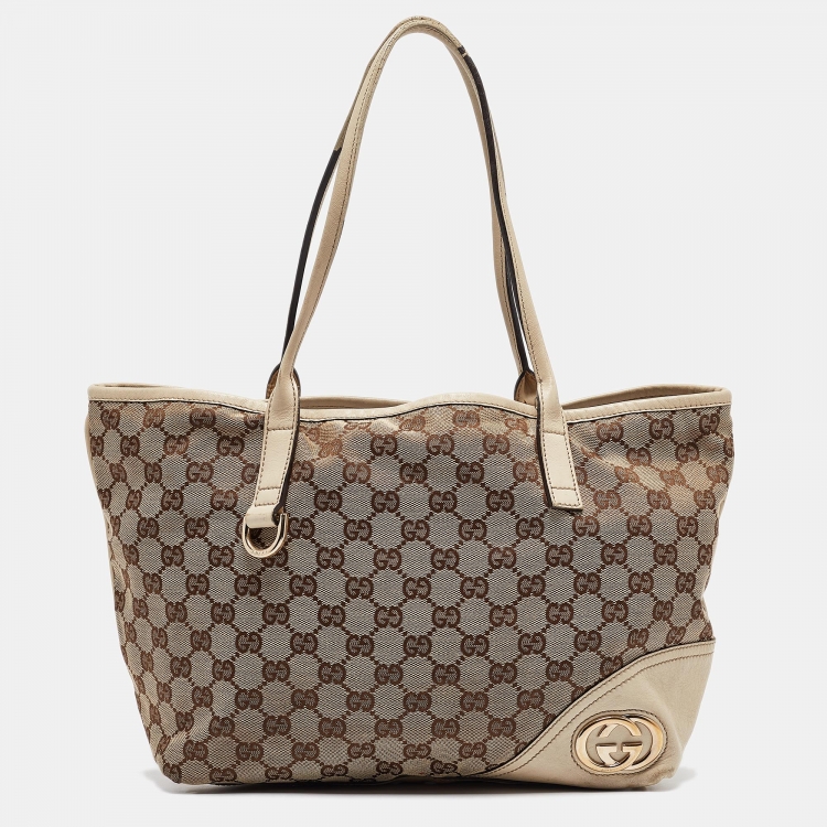 Gucci Beige/Off White GG Canvas and Leather Britt Tote