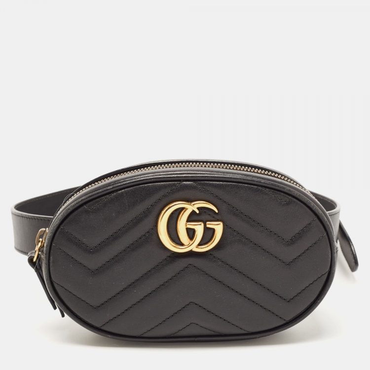Gucci Black Matelassé Leather GG Marmont Belt Bag