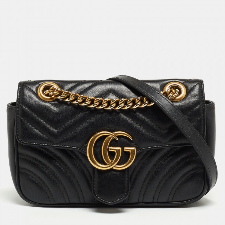 Gucci Black Matelasse Leather Mini GG Marmont Crossbody Bag
