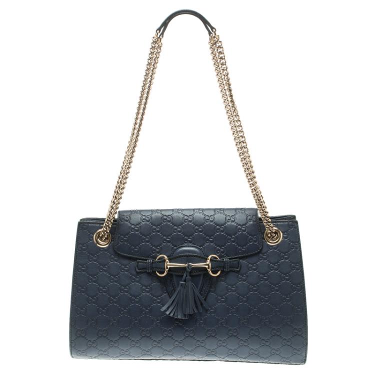 Gucci Dark Blue Guccissima Leather Large Emily Chain Shoulder Bag