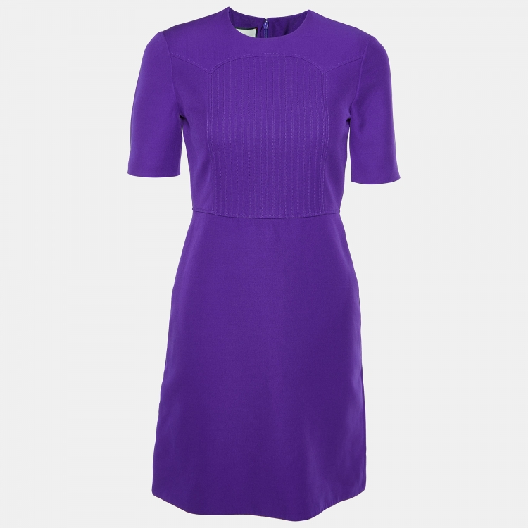 Gucci Purple Wool Pintuck Detail Sheath Dress S