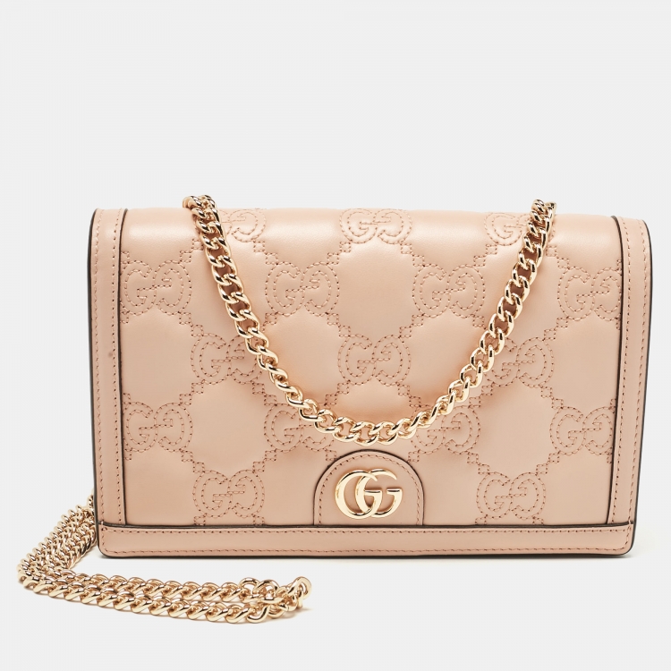 Gucci Rose Beige GG Matelasse Leather Wallet On Chain