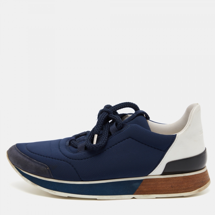 Hermes Blue/White Nylon,Suede and Leather Buster Sneakers Size 37.5