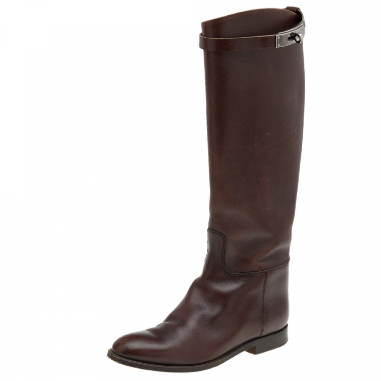 Pre Owned Hermes Brown Leather Kelly Knee Length Boots Size 38