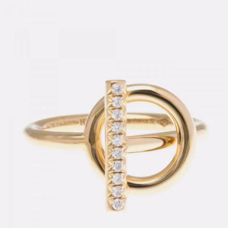 Hermes Echappee Diamond 18K Pink Gold Fashion Band Ring EU 52