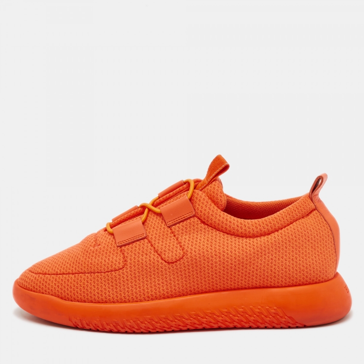 Hermes Orange Leather And Neoprene Team Low Top Sneakers Size 39