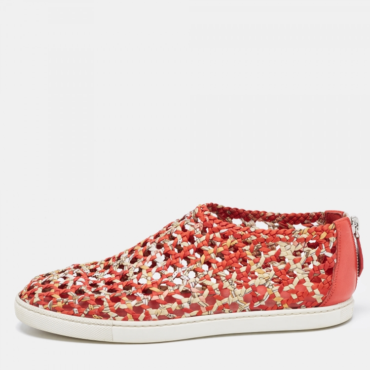 Hermes Orange/Yellow Printed Woven Fabric and Leather Oxygene Sneakers Size 40