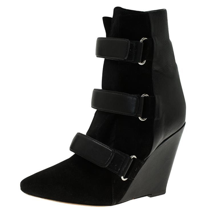 Isabel Marant Black Suede and Leather Scarlet Wedge Boots Size 39