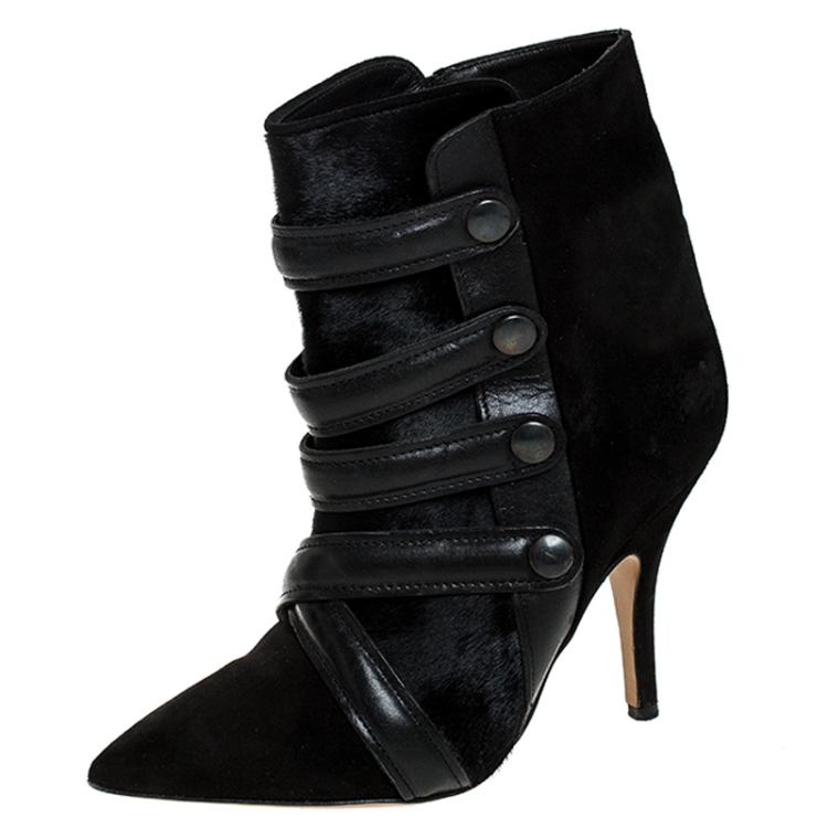 Isabel Marant Black Suede And Pony Hair Pointed Toe Ankle Boots Size 37