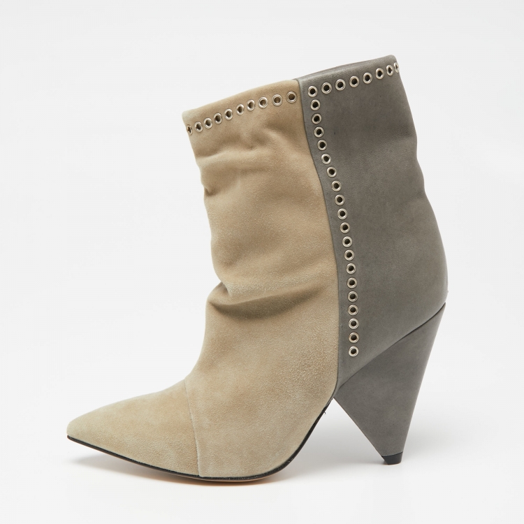 Isabel Marant Grey/Beige Suede and Leather Lance Ankle Boots Size 38