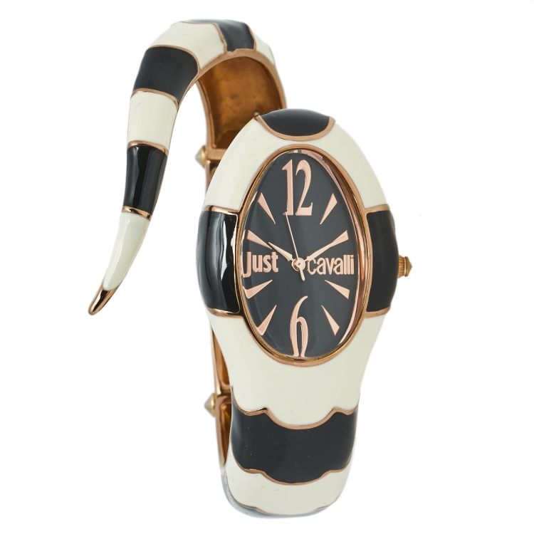 مملوكة مسبقًا Just Cavalli Black Enamel & Rose Gold Tone Metal Poison 7253153506 Women's Wristwatch 27 mm