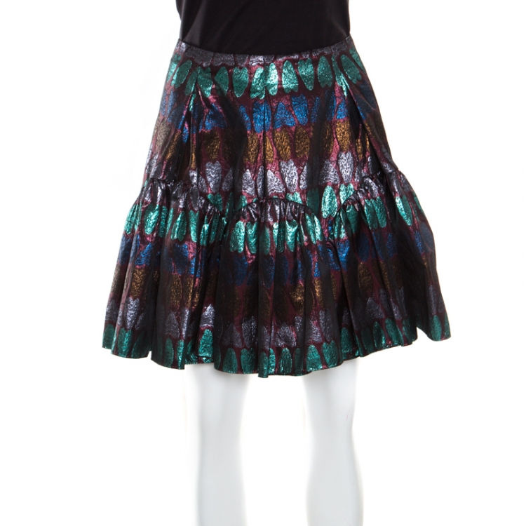 Kenzo Metallic Lurex Jacquard Heart Patterned Gathered Mini Skirt M