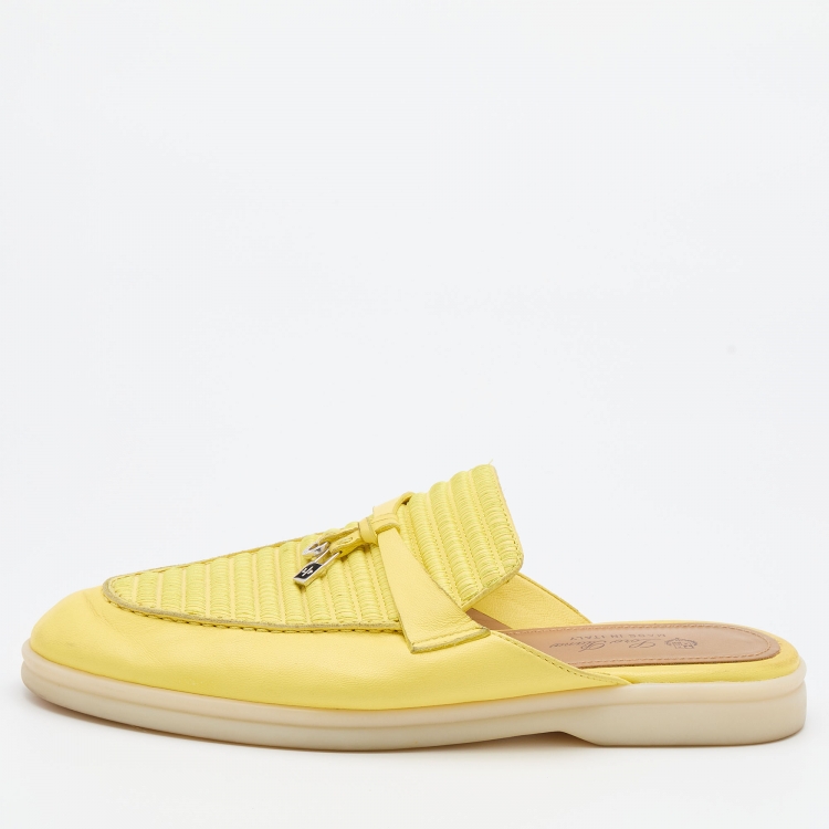 Pre Owned Loro Piana Yellow Leather Summer Charms Walk Babouche Loafers Size 37.5