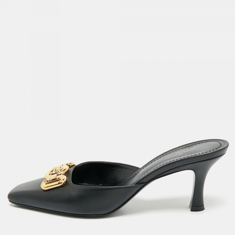 Louis Vuitton Black Leather Rotary Mules Size 38