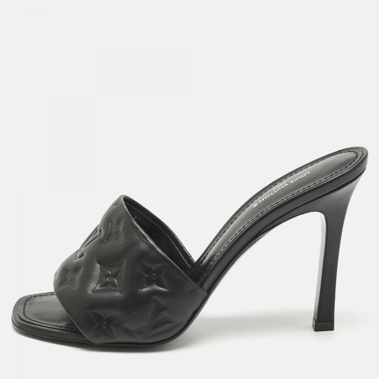 Louis Vuitton Black Monogram Embossed Leather Revival Slide Sandals Size 38