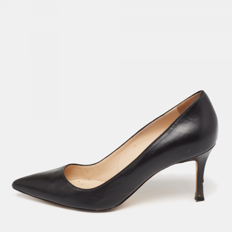 Pre Owned Manolo Blahnik Black Leather BB Pointed Toe Pumps Size 38