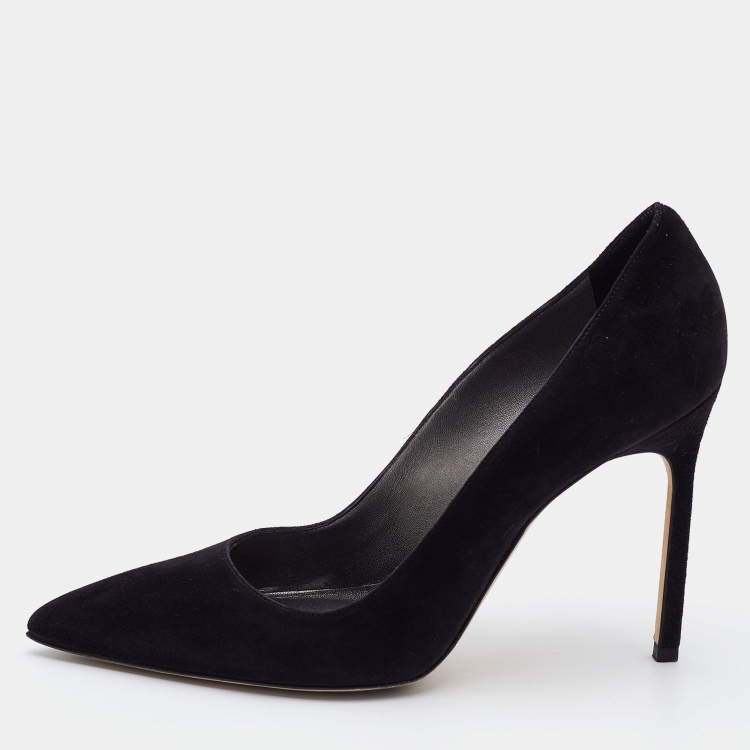 Pre Owned Manolo Blahnik Black Suede Pointed Toe BB Pumps Size 37.5