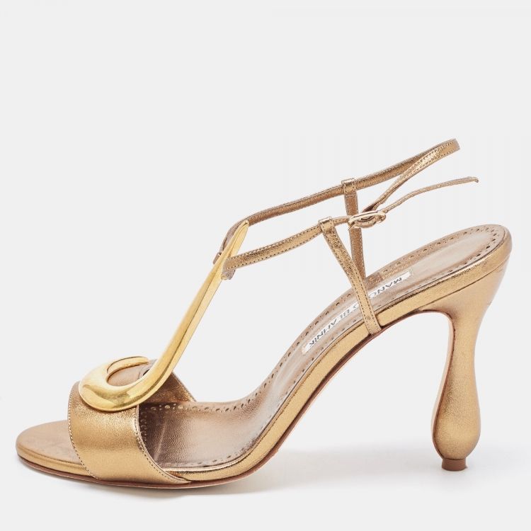 Pre Owned Manolo Blahnik Metallic Leather Ankle Strap Sandals Size 39